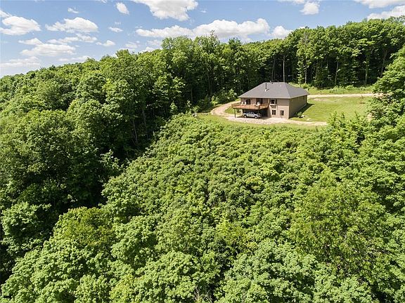 Private one of a kind Home! Setting center in the woods with Abundance of wild life! Get close to nature in this Elegant home overlooking the scenic Bluebell Valley of northeast Iowa. Experience a serene 31 acres of timber Paying close attention to detail this home is a stunning 4 bedroom, 3 bath with full eat in kitchen and breath taking views. Walk out lower level is finished for further entertainment with wet bar, family room and in floor heat. 99% of the interior wood in this custom built home came from the cleared timber where the home is setting including red Oak, hickory, maple and cherry. Offers a Steel shingled roof and geothermal heating and cooling. 3 plus car garage attached, also has 32x52 shop. Nestled a half mile from the nearest road on a private lane. This Ideal location is within minutes of Guttenberg and within 8 miles of White Pine hollow state park . This is a true hunters paradise a nature lovers dream.