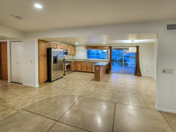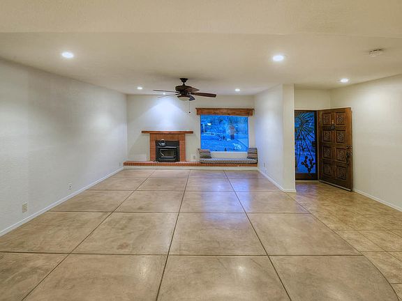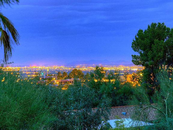 Fantastic North-South facing corner view lot with beautifully updated open kitchen, ss appliances, granite counters, bar seating, living room with lovely fireplace & huge Catalina Mountain views, large family room, nicely updated bathrooms, 4th bedroom could double as home office, ALL NEW SOLAR purchase not leased), roof observation deck with dramatic city & mountain views, NEW LARGE SPORT COURT, fenced sparkling pool & above ground spa, extra storage storage shed, scored concrete & tile floors. Right by District 16 school bus stop. This one is a GEM!