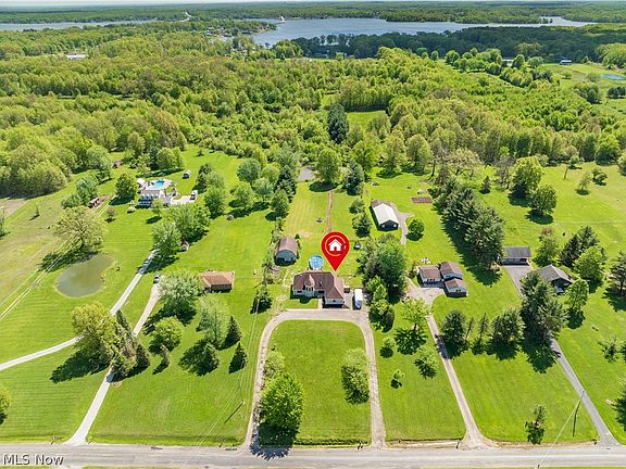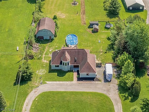 Located in Palmyra township, sitting on a 5.02-acre lot, is this beautiful 4 bedroom home with an inviting covered front porch. Welcomed by the 2 story foyer with a skylight, a beautiful stairway, and a railing. The great room features a corner fireplace with stone accents, there are sliding glass doors leading to the deck and to the sunroom. The spacious kitchen has an oversized island with cabinets galore, an extra deep double sided sink, and a window overlooking the backyard. Adjacent to the kitchen is the dining room with a bay window and a sliding glass door to the side yard. The first floor master suite has a 8x6 walk-in closet and a private master bath with a double vanity, a tub, a standing shower, a linen closet, and an additional storage closet. Completing the first floor is the laundry room, a convenient half bath, and access to the attached 2 car garage. Upstairs offers three bright bedrooms with generous closets and another full-size bath with a double vanity, a skylight, and a tile shower/tub combo. The basement features an office, a vast recreational room with an entertainment center, a full bath with a standing shower, ample storage space, and a walkout to the backyard perfect for enjoying the peaceful surroundings. The impressive yard offers an above-ground pool with a deck, a 40x30 barn with loft space, a trampoline, a storage shed, and a pond. Perfect for all your outdoor enjoyment! Recent updates include septic, walkout basement, sunroom windows, laminate flooring, siding, front door, and dining room windows. Book your private showing today!
