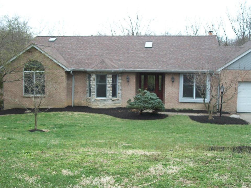 Nestled on a private drive & on 1+ acre, this 3 bdrm, 3 full bath brick & stone ranch features lg rm sizes & cathedral ceiling thru out. Owner's suite highlighted by walkout balcony connecting to private rear deck w/wooded view. Spacious eat-in kit. LL boasts a 48x17 fam rm w/ wet bar, brick WBFP & walk out. Storage space & closets galore! Bring your ideas to make this your own. Furn/AC '21; Roof '20;'Fridge '21; Carpet & landscaping Mar'22. Pool table & barstools included. Water filter in Kit.
