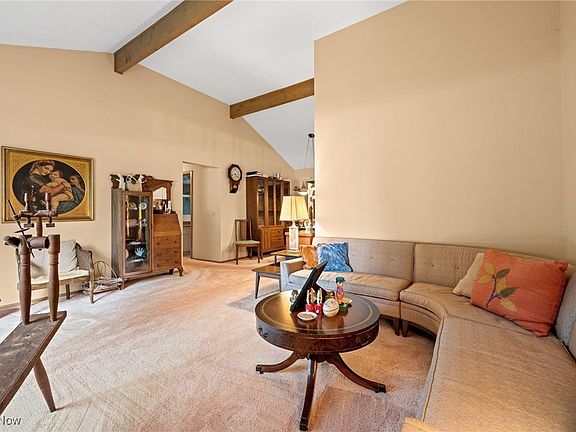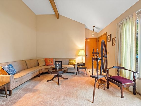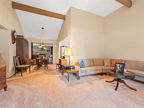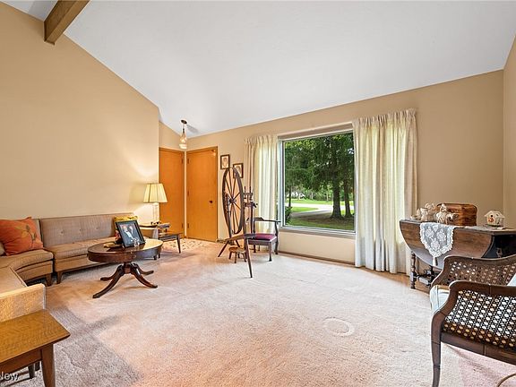 Welcome home to a wonderful Ranch situated on .82 acres in Solon. You won't want to miss out viewing this meticulously maintained one owner home. Open floor plan with large spacious living room which has vaulted beamed ceiling, large picture window and opens to the dining area. There is a large eat-in kitchen with white cabinetry, gas cooktop and all appliances will remain. Three bedrooms all have hardwood flooring, and the primary suite opens to the large full bath which has a double sink vanity plus updated lighting. First floor family room rounds up the main floor living space. This additional living space has wood floors, natural lighting, stone walled gas fireplace with glass doors with door leading to the rear yard and bonus half bath. The full basement is unfinished just waiting for someone to put their touch to creating a recreation room, office space, exercise room or whatever one needs additional space for. There is a washer & dryer that will remain along with a standing freezer and includes an additional crawl space under the family room, glass block windows and sump pump with battery back-up. This home has an attached oversized two car garage and a 24x32 additional garage at the rear of the property that has 12-foot doors, running water and electric. It also has an additional attached shed space in the rear. There is a loft area for additional storage. This wonderful piece of property has mature trees and a large deck. The home has an updated furnace and AC in 2023, electrical box in 2021, gutter guards, and fully insulated attic. This property is in close proximity to shopping, restaurants, schools and library.