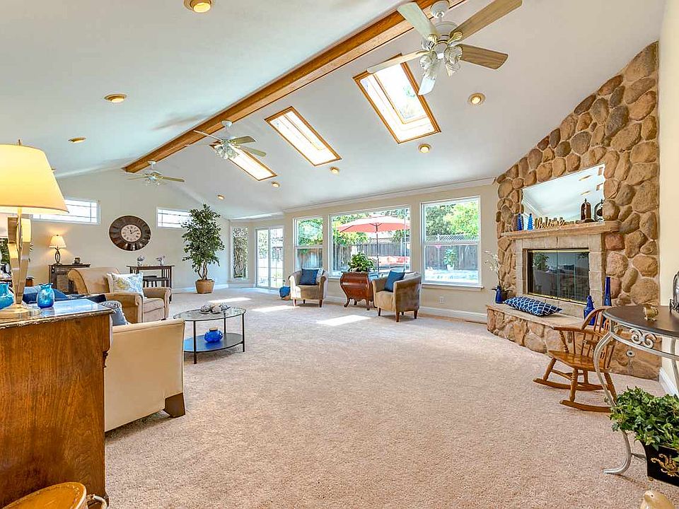 This home has been beautifully remodeled and expanded! There's a spacious eat-in kitchen with nicely done tile counters and backsplash, freshly painted cabinets, tile floors and a new stove top. 500 square feet was added so there is a great room with vaulted ceiling and an expanded master with vaulted ceiling, large bath and walk in closet. There are 9 skylights all over the house. Fresh interior paint, new carpet, dual pane windows, copper plumbing, refreshed landscaping with automatic sprinklers. There's a sparkling pool for those hot days and a shady deck. This is a beautiful, move-in-ready home! OPEN Sunday, 9/2 from 1:00 to 4:00