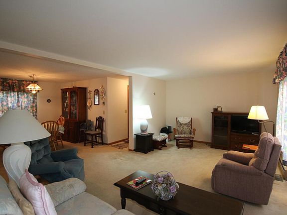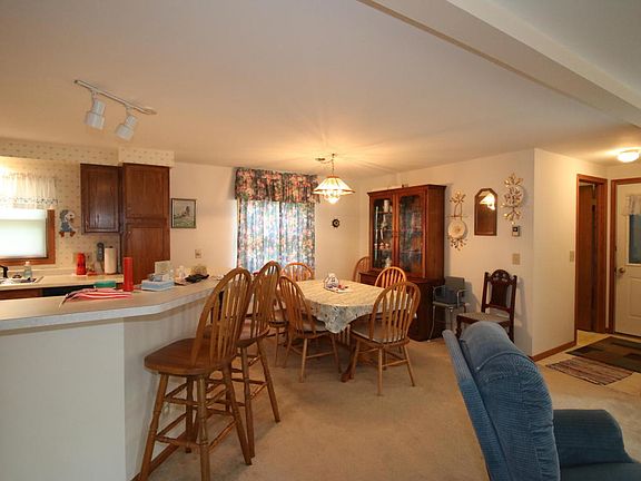 Well maintained home just a short drive from the City limits. This 2 bedroom, 2.5 bathroom home features an open concept living area, central air, and is well insulated for the winter months. A 2 car attached garage off the paved driveway is nice for the winter months. There is a half bath in the utility room. The property is almost 4 acres with a detached garage for a workshop, a pole barn, and a storage shed.