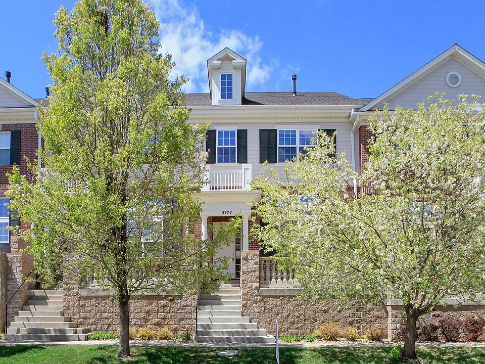 Gorgeous turn key condition 3 bdrm/3bath brownstone walk-up in CHERRY CREEK school district (home schools BELLEVIEW, CAPMPUS and CHERRY CREEK HIGH) under $450K!!! Urban setting yet quiet street, 0.3 miles from the Dayton LIGHT RAIL STATION. Large front porch area with nice views. Spacious w/dramatic ceilings great room that includes gas fireplace and less than 3 y.o. designer lamp. Oversized gourmet kitchen w/extensive cabinetry, sitting area and built-in desk area. Covered deck. Very dramatic high ceilings and very light and bright. Carpet is less than 3 y.o. professionally cleaned April 2019, freshly painted March 2019, SS appliances 2016, washer and dryer 2016, new granite counters in master bathroom and newer semi-custom blinds! Unfinished basement can be used for storage or add bedroom/bath. Roof also replaced (due to hail damage) in 2018.Gorgeous community!Will not last!
