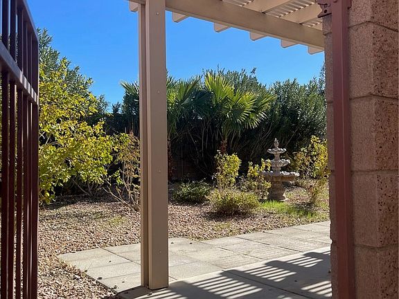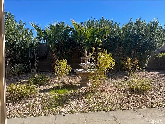 This home, in a gated community, provides easy living options, plentiful amenities, and gorgeous grounds in one of the most in-demand retirement destinations designed by Del Webb at Palm Desert. The detached one-level, two bedroom and two bath home has a two car garage, large kitchen/dining room that opens out via double slider doors to a tropical back yard setting with water fountain. The primary bedroom with en suite bathroom and extra large walk-in closet has a bay window overlooking the backyard's lush garden with shade-providing trellis along the entire back patio. Plantation shutters, ceilings fans, laundry room, and spacious storage abound. A little tender loving care, some drywall, and your re-imagined kitchen and bathrooms provides a blank canvas to create your dream retirement home for an As-is bargain price. Only minutes from Palm Springs, Cabazon Premium Outlet stores, Morongo Casino among other desert attractions. HOA include access to two golf courses, swimming pool, clubhouse, dining room, card room, tennis courts, paddle tennis, gym, yoga room, and more.
