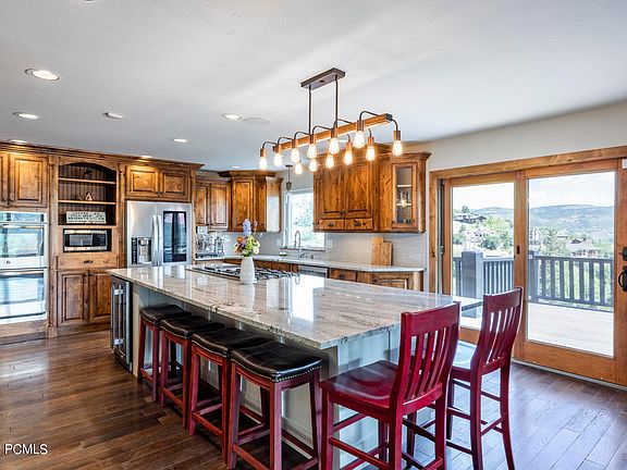 Take a deep breath and come home to your own private retreat nestled in the highly coveted Pinebrook neighborhood of Park City. With trails just around the corner and a quick bike ride or hike to a number of amazing outdoor activities, coupled with the convenience of being just a stone's throw from grocery stores, shopping and 15 minutes from world-class skiing, this remodeled mountain home offers an amazing lifestyle. As a northeast-facing downhill home, the morning light and endless afternoons bring in the sunshine and incredible cross-breeze from all the windows and doors. The well-thought-out floorplan creates a feeling of ease, and not overwhelm, in this 5,282sf home. Upstairs has a very large master suite with vaulted ceilings, a fireplace, remodeled bathroom, large walk-in closet, two more large en-suite bedrooms and a large laundry room. The lower-level walk-out basement has an en-suite bedroom, a flex room off the mechanical rooms, another flex room presently used as a full home gym, large family room with fireplace, game space, and leads out to a covered patio with hot tub overlooking the yard and views. On the main level there are two living rooms both with fireplaces, formal dining room, a remodeled gourmet kitchen with high-end appliances, double-ovens, wine refrigerator and large island, walk-in pantry, a half bath, and separated mud room and locker area off the garage, two large living areas. The main level has an extra-large deck spanning the width of the home with ample room for a game of corn hole as well as entertaining into the night while taking in the incredible panoramic views of the Pinebrook hills and native wildlife. Parking has never been easier for all your cars and toys; the over-sized ~700sf garage has been reinforced in the ~300sf storage space below. The adjacent pergola carport and ample parking in the flat driveway is great for those snowy days and easy for guests and parties.