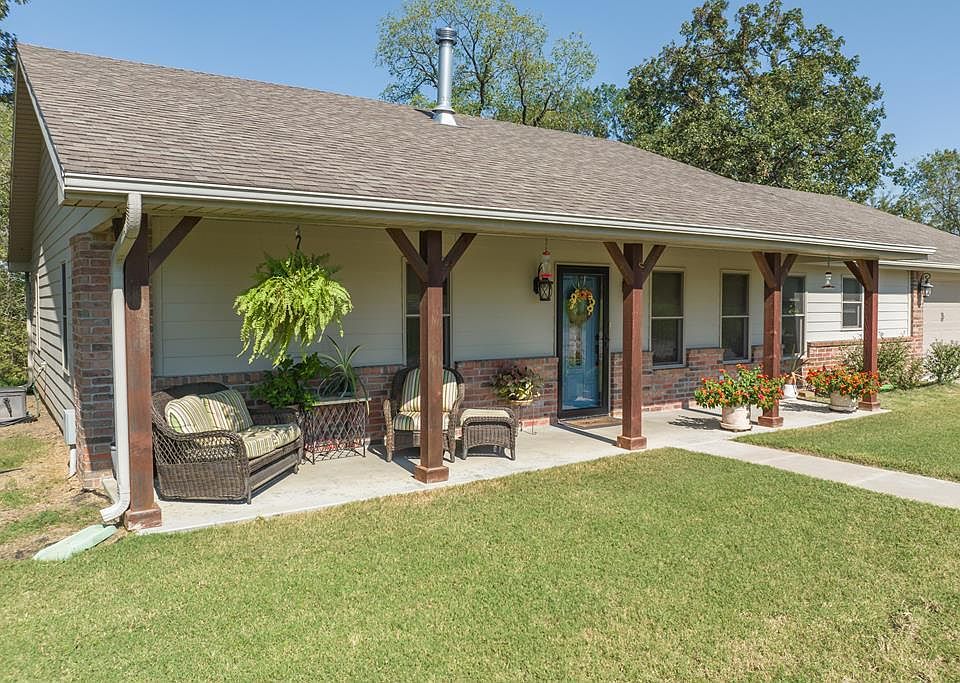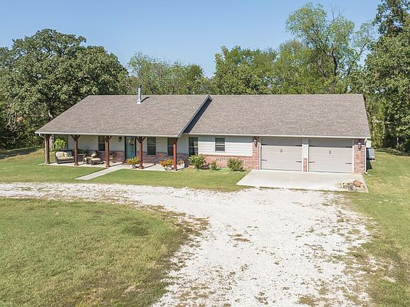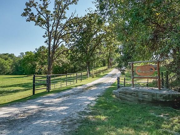 Welcome home to Hickory Ridge. The almost 2200 sq. ft. home features a large open layout of dining room, living area,& kitchen. Large stone fireplace provides a focal point of the home as well as providing a valuable heat source. Kitchen features lots of cabinet space & is separated from the living area by the large corrugated tin sided bar, that provides a perfect setting for entertaining or quick meals. To the East side of the home you will find the large master suite as well as the oversized laundry room. The bedroom, is accentuated with the master bath that includes both his & her walk-in closets, double vanity, stand alone shower, & soaker tub. On the West side of the house you will find two “mirrored” bedrooms on each end, both equipped with large closets & separated by the visitors bathroom. Also worth note is the oversized 2 car garage, Trex composite back deck, 30'x36' fully enclosed machine shed, 40'x30' shop with 2 overhead doors as well as a two room living quarters with full bath. Setting on 86.88 acres of which 48 acres are well-maintained pasture that is fenced & cross-fenced into 3 pastures. Permanent working pens, automatic water, Spring Fed pond, as well as 21 acres currently in hay production make this a self-sufficient ranch. Property's name sake comes from the mature timbered ridge that runs through the property. Providing wildlife encounters, hunting opportunities, character, and natural beauty.