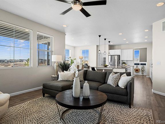Welcome to this stunning 4-bedroom, 4-bathroom home set on a spacious 9,000+ sq ft lot, backing directly to open space with unobstructed canyon views and stunning horizon-wide morning sunrises. With over $120K in builder upgrades and meticulous attention to detail, this home shows like a model. Step inside to an open-concept floor plan flooded with natural light, complemented by soaring ceilings and designer finishes throughout. The chef’s kitchen is a true centerpiece, featuring upgraded GE Profile appliances, a large island, and a walk-in pantry with custom built-in shelving—perfect for entertaining or everyday living. The fully finished, fully permitted basement expands your living space, providing endless possibilities for a media room, home gym, guest suite, or additional entertainment area. Enjoy modern conveniences such as a rare 3-car garage with an EV charger, Smart Thermostat, Ring doorbell & camera system, app-controlled garage doors, prewiring for solar, and high-speed wired internet. The home is also prewired for in-wall TV installations in the Family Room, Office, and Basement. Outside, you’ll find $50K in professional landscaping, including a covered patio with built-in extended seating, ambient evening lighting, and a dedicated gas line ready for your BBQ or fire pit—ideal for relaxing and taking in those breathtaking canyon views. Located in the sought-after Macanta community, residents enjoy a 1,500 sq ft state-of-the-art amenity center with a gym and pool, along with over 1,000 acres of open space and 13 miles of scenic trails right at your doorstep. This is the perfect blend of luxury, functionality, and outdoor living—don't miss your chance to call this home!