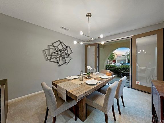 Exquisitely designed and finished former model home offers a dream lifestyle in Carlsbad's Calavera Hills. This home offers peace and tranquility on a quiet cul-de-sac, together with the convenience of being just minutes to the Carlsbad Unified schools you desire, the beach, Legoland, the Village of Carlsbad and more. Amazing floorplan offers an upgraded kitchen opening to the great room with a separate dining room for your gatherings. With 3 bedrooms plus a bonus room upstairs, featuring custom barn doors and a main level bedroom with access to a full bath with separate tub and shower, the home accommodates multigenerational family life in stride. A few of the many upgrades you'll find here are owned LG ~8.5 kw solar panels, electric charging outlet in the garage, tankless water heater, wood flooring, plantation shutters, designer ceiling fans, and a dream backyard with gas firepit. Each bedroom is equipped with a walk-in closet with a grand built in dream Master closet. The home offers exceptional storage options including its tandem storage garage space with built in work shop area. Upgraded flooring includes wood, carpet and tile throughout. Walk to the community swim club, playground, grills and pickleball. An amazing lifestyle opportunity awaits. 2021-09-24