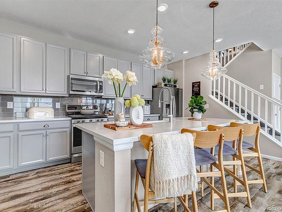 Welcome to this beautifully designed paired home located in the heart of Castle Rock, CO. Offering 3 spacious bedrooms—or 2 bedrooms plus a stylish main-floor office with a chic sliding barn door—2.5 baths, and nearly 2,900 sq ft of total living space, this home perfectly blends comfort and elegance. Set on a generous corner lot, the private backyard invites you to unwind under the included gazebo—an ideal spot for relaxing or entertaining. Inside, luxury vinyl plank flooring enhances the main level’s open layout, where the inviting living room flows effortlessly into a chef-inspired kitchen. Enjoy Corian countertops on the expansive island, upgraded pendant lighting, and premium stainless steel appliances including a gas range. An adjacent eat-in dining area offers ample space for gathering with friends and family. Upstairs, a versatile loft provides additional living space, alongside a convenient laundry room and a stunning oversized primary suite. The suite features an abundance of natural light, a large walk-in closet, and a spa-like en-suite bath complete with dual vanities, upgraded lighting, and a walk-in shower with a built-in bench. The 902 sq ft unfinished basement is ready for your personal touch—whether you envision a home gym, media room, or extra storage. A 2-car attached garage offers direct kitchen access and side yard entry for added convenience. Just steps from scenic trails and open space, this home is also ideally located with a 15-minute commute to DTC and only 30 minutes to Denver. Enjoy nearby shopping, dining, and local breweries in vibrant downtown Castle Rock. With lawn care and snow removal included in the HOA, you’ll love the ease of true low-maintenance living. *NEW ROOF BEING INSTALLED* *RADON MITIGATION SYSTEM INSTALLED* *HVAC SYSTEMS SERVICED* *FENCE POWER WASHED AND STAINED* *DRIVEWAY BEING RESURFACED PER HOA REQUEST*