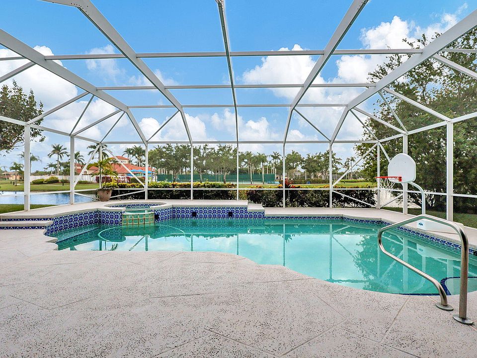 A beautiful, bright, move in condition home in the Grand Isles! Relax in the spacious back patio on a lake & enjoy the pool & spa, perfect for entertaining! (heater updated 3 yrs ago, pump replaced 4 yrs ago, managed by Aqualink app) With a NEW ROOF(warranty), AC & hot water heater installed in 2022, all newer appliances & impact windows & doors(2007), you can move in & make it your own! Wonderful eat-in kitchen with granite counters, tumbled marble backsplash, range hood & wood cabinets opening to the family room with tile & laminate flooring throughout. 1 bedroom & bathroom on the first floor, with the master & 2 additional bedrooms upstairs. All bedrooms have custom closets. If you are looking for one of the best family neighborhoods close to the equestrian area, do not miss this home!