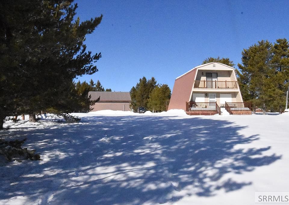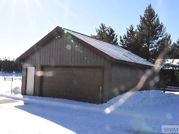 RIVER FRONT cabin on 1.06 acre lot in Rancho McCrea. Modified A frame with metal roof, front and back porches with a third porch on the second level overlooking the Henry's Fork on the Snake River, detached 2 car stall garage, an asphalt driveway and a U shaped dock. Plus 3 bedrooms, 2 full bathrooms, a kitchen, living room with a pellet stove, and a laundry/mudroom with an outside door. Community boat launch also. May be used as a vacation rental.
