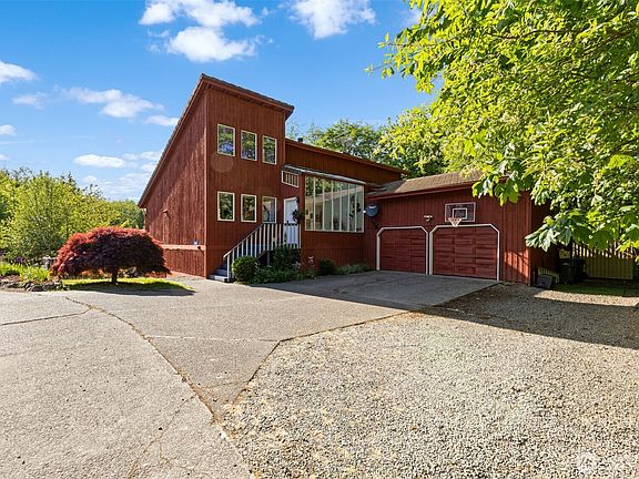 This truly unique custom-built 3,612 sq. ft. home on 2.76 acres offers space, style, and versatility! Towering ceilings and a wall of windows fill the open concept living area with natural light. A stunning spiral staircase leads to a loft—ideal for an office or reading nook—connecting to the spacious primary suite with fireplace and private deck. Enjoy a large main deck overlooking the peaceful, private grounds and seasonal Olympic Mountain views. The large walk-out basement offers endless potential for an apartment or multigenerational living. Located in a desirable neighborhood conveniently located between Silverdale and Bremerton. Come explore all the possibilities this one-of-a-kind property has to offer!