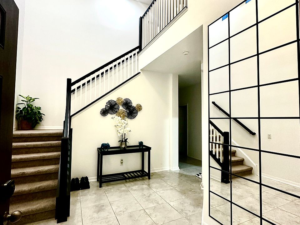 Spacious 4-bedroom, 3-bathroom home offering 2,615 sq. ft. of comfortable living space. This elegant residence features a grand royal high-ceiling front entrance that welcomes you inside. In addition to the main living areas, enjoy a versatile bonus loft space perfect for a home office, playroom, or additional living area. The home includes a 2-car garage and a covered lanai overlooking a generously sized backyard, ideal for outdoor gatherings. Equipped with a whole-house water purification system and an RO system providing purified mineral water for your health and comfort. Ideally located close to hospitals, grocery stores, and schools, this home combines luxury, functionality, and accessibility perfect for families seeking a well-appointed rental in a convenient neighborhood.