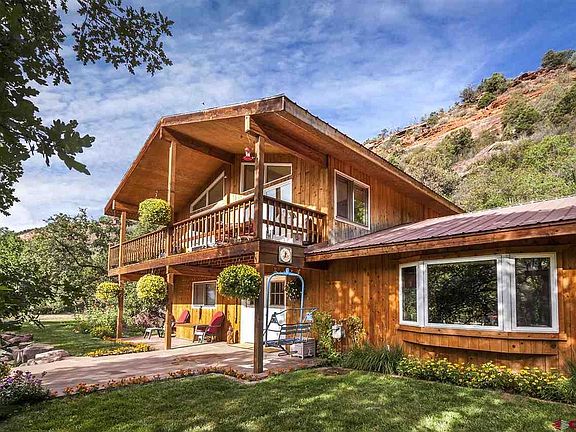 PRIVACY IN THE ANIMAS VALLEY. 3.5 ACRES NO COVENANTS, DURANGO COLORADO This home is nestled at the base of the mountain on 3.5 acres. The western boundary is National Forest. Living in the Animas Valley is like being on a permanent staycation. From the moment you turn on to County Road 203 relaxation begins and is completed as you drive up the tree canopied driveway and arrive at your own personal oasis. The landscaping feels lush with perennial gardens and grassy lawns. Surrounded by scrub oak trees that create a very private, relaxing ambiance. Hummingbirds buzz in the air as you enjoy your time on the deck or patio. All 4 seasons are spectacular here. Spring greenery, fall leaves and the solitude of winter snows full of quiet beauty. This one owner home evolved from 1600 square feet to 2400 square feet with the addition of the spacious master suite in 1992. To maximize the views the living space is upstairs and the bedrooms are downstairs keeping them cool in the summer. The main level has a large welcoming entry, bedrooms, laundry and 2 baths. The master suite is on the north side of the house and the additional two bedrooms and full bath are on the south side of the house allowing for privacy. The upper level has the kitchen, dining, living and a full bath. There is a wall of windows and a deck to capture the views. With the placement on the lot, continued expansion is limited only by the imagination (or needs of the owner). Easy to add a garage and zoning allows granny flats. WHAT A LIFESTYLE: Incredible views include the sun setting on the red cliffs across the valley, watching the Durango and Silverton Railroad chug up and down the tracks and mountain peaks. The valley is the place to live. In the fall the wildlife abound including foxes, deer and the occasional bear moving across the mountain behind the house. And if youre up early on Snowdown weekend you can watch the hot air balloons silently floating down the valley. This location cant be bea