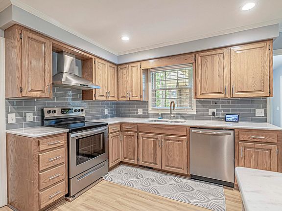 • Features: Kitchen Exhaust Fan, Pantry, Stainless Steel Appliances, Solid Surface Counters