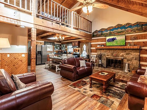 2023 Gross Rental Income at $56,328. Authentic log cabin on a huge 1.8 acre lot just minutes from all the Smokies action! This classic Smokies cabin, with hand hewn logs and exposed beams, is a rare find being so close to the Parkway but also having so much room to spread out and enjoy the peace & quiet away from the usual rental areas. This cabin has a large outdoor entertainment area focused around a large carport with a hot tub, large sitting area, outdoor grill, etc. but also provides a covered front porch if you would rather kick your feet up and take in the mountain views. Walking in the front door gives you the classic cabin feel the Smokies is known for, and accentuated by a large gas logs fireplace and cathedral ceiling with two skylights. The main floor has two bedrooms and full bathroom, and upstairs has one large bedroom with multiple twin beds and an additional full bathroom. The open air loft game room is an exceptional hang out spot where you can really see the craftsmanship of a true log cabin. But just because it has a traditional appeal, it is also built for peace of mind with backup systems in place. The cabin includes a Generac propane backup generator and a Starlink high speed internet system, so when Mother Nature sends a storm our way, your lights will be on and your wifi streaming, giving you or your guests an added sense of security to allow you to stand out from the rest.