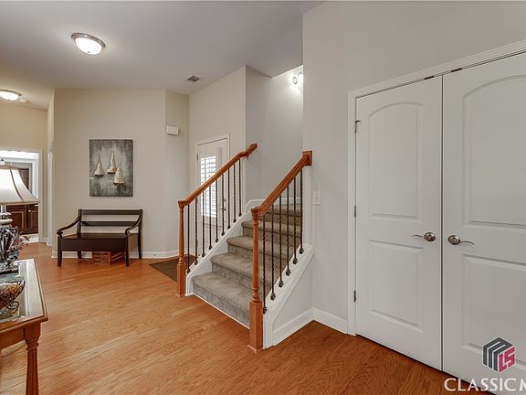 It is rare to find a high end flat that is both elegant, open and handicap accessible. This stunning corner unit will captivate you with its incredible floor plan featuring a dining room, graciously sized living space and large kitchen and breakfast room. The homeowners selected upgrades throughout, including built-in shelving flanking the gas fireplace, a custom backsplash in the kitchen and high end appliances. Natural light floods the property and the wonderful screen porch is accessible from French doors in the great room. Located in a premiere location within the complex, the screen porch offers a peaceful space to read and enjoy morning coffee. The open kitchen features a long island with a breakfast bar, custom backsplash, ample cabinetry and a gas range. A large walk in pantry offers space for not only food items, but overflow of appliances, platter storage and more. A powder room and the laundry room are conveniently located down a wide corridor which leads to the garage entry from the kitchen.