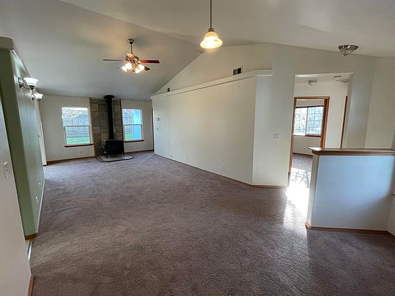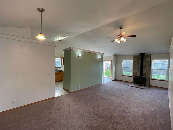 Great little floor plan with tall ceilings, and a fireplace woodstove. Kitchen has a large pantry and gas appliances. Indoor laundry with storage. Large garage with storage above the garage door. Large Master bedroom with separate door to the patio in the backyard. Good sized side yard all gated off, would make a great dog run or dedicated pet space. House has a dine in kitchen and a designated space for a separate dining room or office. Hardi plank siding around the front and T-111 siding around the back. House has been a rental for several years so with a little new owner elbow grease this place could really shine. At this price in this market this one won't last, call your Realtor for a showing.