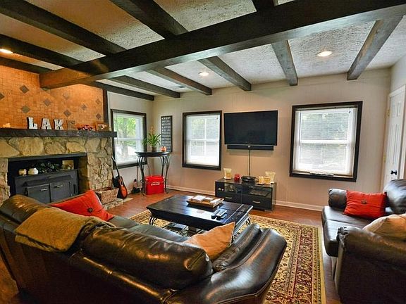 FURNISHED Updated and well appointed open concept home seconds from the lake. Open concept living/dining/kitchen w/ wood stove, updated flooring, paint, and appliances. Rec room/ 3rd bedroom opens onto carport/backyard. Backyard is a park-like setting, where you can see flowers, birds, butterflies, and deer. Beautiful seasonal sunset lake view from the front porch. Newer roof, HVAC, water heater, and more. Workshop has 1/2 bath, separate hot water heater, wood stove, window AC unit, cabinetry, and shelving. Patio area great for grilling and company. Additional carport for boat/toy storage. This property has been lovingly updated, upgraded and maintained. It is a gorgeous spot to come home to every day!
