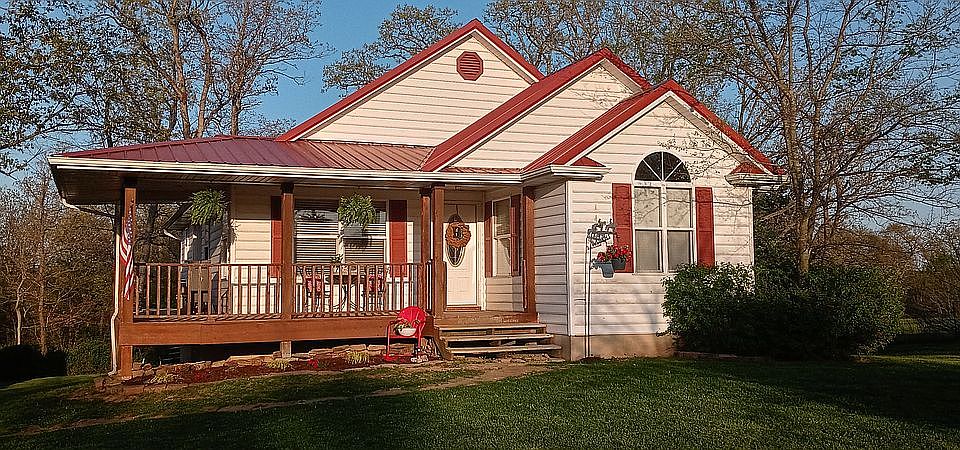 Beautiful home for sale outside of Farmington. Home has 3 to 4 bedrooms, 2 bathrooms and a 3rd one roughed in. Open floor plan with vaulted ceilings throughout the house. Open kitchen, gas fireplace, claw foot bath tub in master bath, partially finished walkout basement, large front porch and large patio. Very nice house to entertain guests! 24 x 24 detached garage, nice pond to fish in and live creek. All of this on 6 acres! Message to make appointment, serious buyers only please. Asking price $369,000.