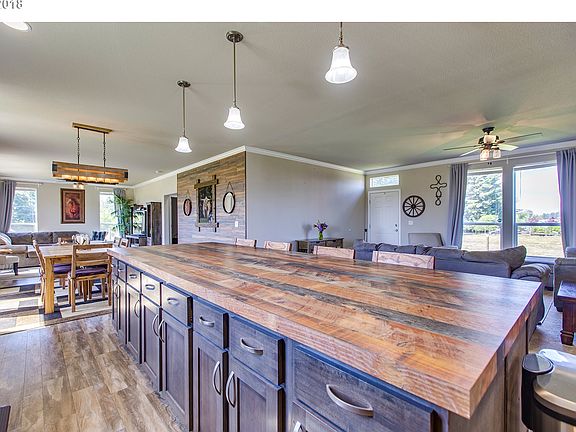 Situated on 10 beautiful fenced acres with breathtaking Mt. Hood view, this custom built family home is a slice of country heaven, with the convenience of town just minutes away! Custom kitchen which includes an 11ftx4ft butcher block center island. Very open floor plan. With 2 separate living rooms and a big bonus room, this home is an entertainer's delight! Enjoy your 36x48 concrete slab shop and large fenced garden.