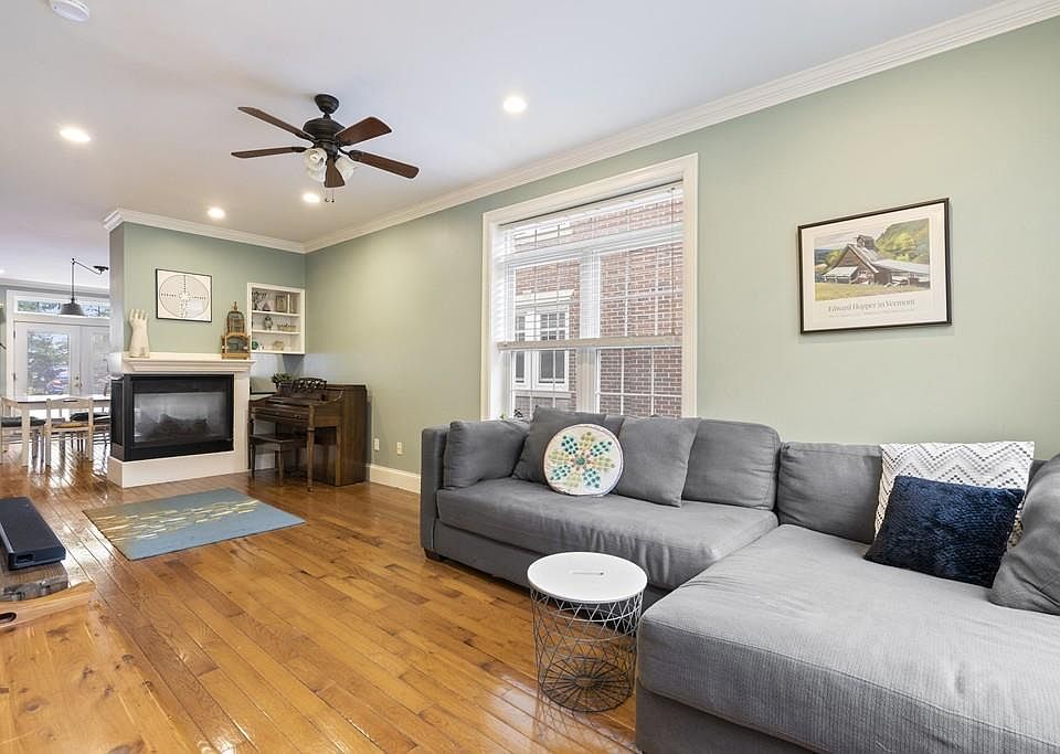 Metropolitan Hill tri-level 3-bed, 3.5-bath townhome with two bedroom suites and two-car parking with garage. In this corner unit, the living room welcomes light through big windows. Its two-sided gas fireplace also faces a generous semi-open eat-in kitchen and dining area with pantry and wine fridge. Find French doors to an exclusive deck. A half bath completes this level. The upper level offers two large bedrooms and two baths, incl. a king-size master suite with soaker tub. And the lower level with en-suite bath offers privacy for guests or working from home. Built in 2006 with tall ceilings, central air, very roomy closets, and a massive laundry/storage room. A shared yard offers space for gardening. Enjoy both a garage and parking space. A mile to Roslindale's farmers market in Adams Park and village shops, the commuter rail, and Arnold Arboretum. A mile to West Roxbury center. Two miles to Forest Hills Station (by #34 bus) on the Orange Line. SHOWINGS BY APPOINTMENT ONLY.