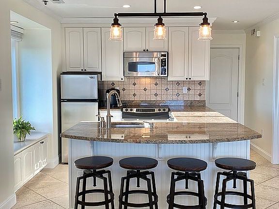 - UNIT FEATURES: Kitchen Center Island, Tile Floors