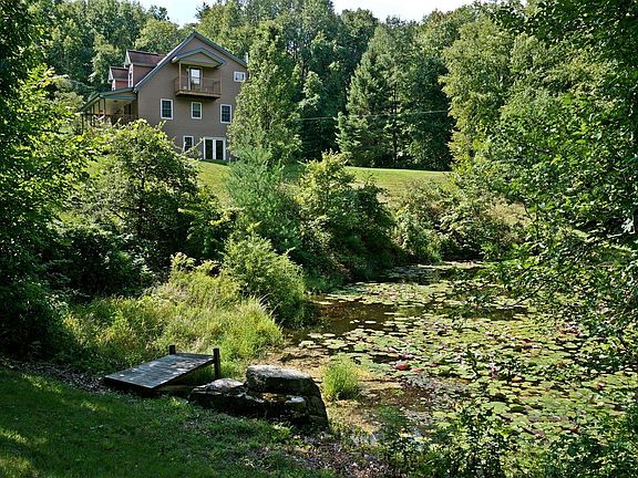 Revel in the privacy & solitude that this beautiful property provides being tucked away on 12.3 acres of mostly open land, at the end of a dead-end lane. This warm & inviting 3 bdrm, 2 bath Cape offers an open floorplan w/ a bright & cheery kitchen & dining area, & cozy living rm w/ cathedral ceilings & woodstove. The huge master bdrm includes a balcony, private full bath w/ jetted tub, & a yoga/reading nook. There's a wonderful office area or craft nook in the loft. A nice family rm is offered in the partially finished, walk-out basement. Nicely set up for horses with a 4 stall horse barn w/ water & electric & plenty of land for pasture. There are beautiful plantings including mature apple trees & berry bushes, & a spring fed pond w/ water lilies & dock. A nature enthusiast's oasis!