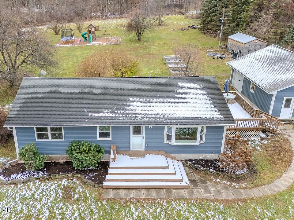 Welcome to this charming single-level property nestled on 2 serene acres, featuring 3 BEDS, 2 FULL BATHS (Primary Suite), Open concept, Butcher block countertops, SS appliances, Beautiful floors, Finished basement, Refinished two tier back deck, Detached 4 car garage/workshop with a pellet stove. New siding, doors, windows and hot water tank. Enjoy privacy and space with the bonus of a highly convenient location close to everything you need.Don't miss out on this gem—homes like this don't last long.