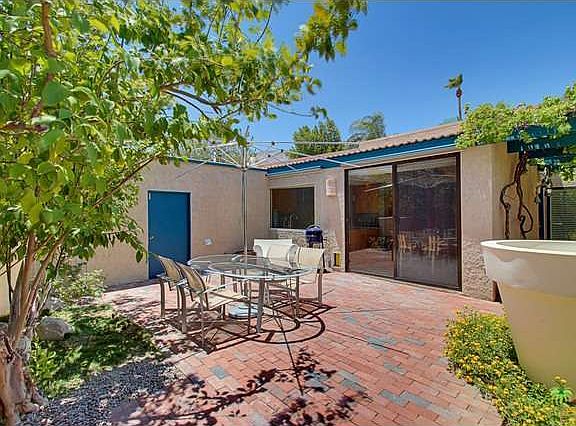 A stunningly renovated designer residence featuring its own large private spa with beautifully walled and landscaped backyard and a private courtyard patio as the front entry. The condo features interesting architectural details at every turn. A wonderful master suite with sliders opens to the patio/spa and has a unique office/closet area. There is a guest room with kitchenette that provides guests with a sense of privacy and access to their own outdoor space. A cook's kitchen with stainless steel appliances, wet bar, vaulted ceilings, living room fireplace, high tech security system and a two car attached garage are just some of the amazing qualities to be enjoyed here. The Sundance Villa community offers a large pool, tennis courts, and beautiful maintained green walking spaces. Units in Sundance Villas rarely come on the market and don't last long when they do. This is definitely a must see.
