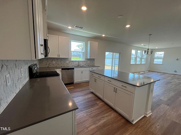 Gorgeous POOL community in the heart of Lillington. Minutes from schools, shopping and restaurants. This 2539 sq ft two story home has 4 beds, 2 1/2 baths with 1st floor den and large loft on the 2nd floor. The 9' ceilings and open floorplan lead easily out to the covered patio. Inviting and bright gourmet kitchen has gas cooktop, quartz countertops, large island, fresh white 42'' cabinets & upgraded tile backsplash. Primary suite is large w/walk in closet, double vanity with quartz countertops and upgraded, oversized tile shower. Ready now and can close in 30 days!