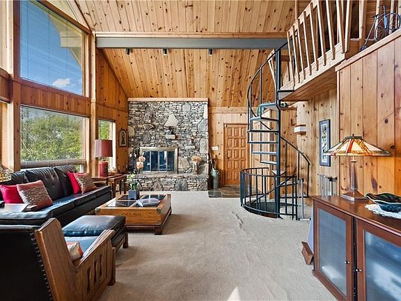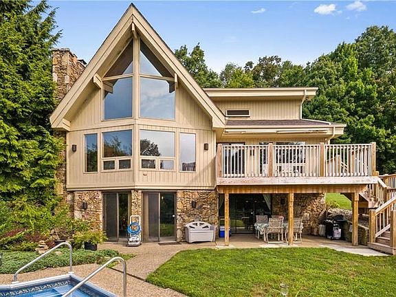 WOWSERS!!! This AMAZING 4BR/3BA Lindal custom home featuring cedar wood, with local stone offers SPECTACULAR MOUNTAIN VIEWS all year round! This home sits on 3 lots totaling 2.48 acres & offers high cathedral ceilings with energy efficient Low-E picture windows on main floor. Rustic barn-style beams and cedar planks throughout. Two wood burning fireplaces set in custom stacked stone walls & hearths! The eat-in kitchen features Juparana Bordeaux high grade granite countertops, kitchen island, 12x12 Indian Slate tile flooring & stainless steel appliances. Dining room offers large windows to take in the amazing view & a slider leading out to the front deck. All 3 bathrooms have been updated & feature beautiful Italian Marble. Finished basement with living space & game room that leads out to the heated 45x20 Grecian swimming pool! A 25x25 carport with a long driveway & plenty of room for parking. Beautiful home in the Laurel Highlands close to 7 Springs Mountain Resort and State Parks!