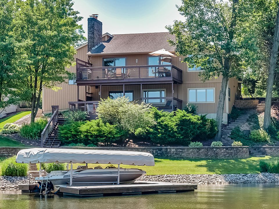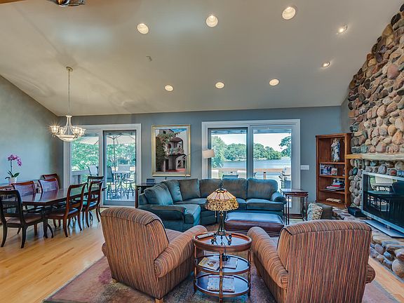 This is it..the best view in Shorewood Forest on Louise Lake! Spectacular lake front property forms the backdrop of this open concept, totally renovated, multi-decked, hillside ranch. The extensive landscaping surrounding this property focus on the expansive panoramic lake views with over 330 ft of shoreline, 2 docks all nestled on a quiet bay. Seventeen-foot wood beamed cathedral ceilings, wood floors, stoned fireplace, Gourmet Kitchen with granite counter tops and stainless-steel appliances compliment the public areas of the home, with the main floor Master En Suites overlooking serene water front views. The lower level, with yet another stoned fireplace, flanks the Rec. Room and custom wet bar with slider to second deck overlooking the water's edge. Lower level lake view bedroom, finished laundry room and full bathroom w/ steam shower and whirlpool, not to mention, storage room options round out this recent renovated beauty.