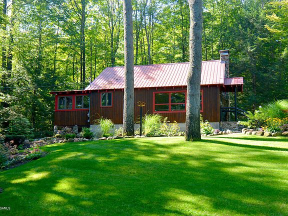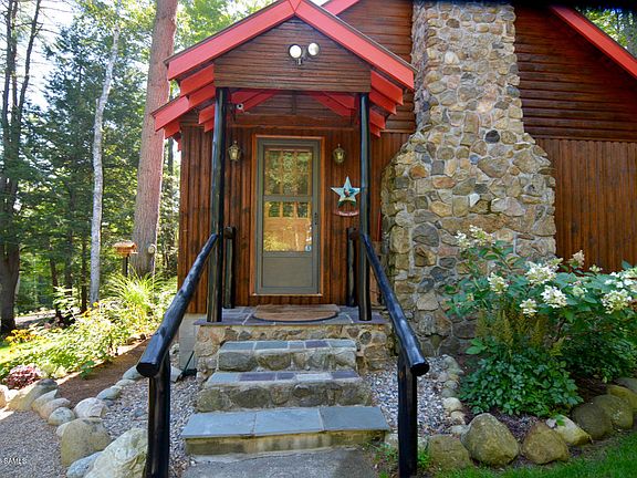 Charming Adirondack cabin in a picturesque setting with Diamond Point/Lake George beach rights! Ideal for the buyer looking for an easy to maintain home and a beautiful, fenced and gated retreat. This updated, cozy home has it all - stone fireplace, family room with open beams, two bedrooms, two full baths, updated kitchen, large deck, walk-out basement, beautifully landscaped yard, in-ground sprinkler, back-up heating system, security system, gated privacy perimeter fence, and circular drive.