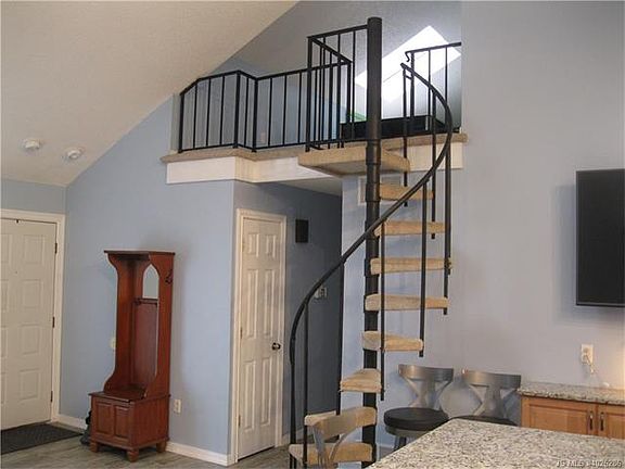 - Interior: Bedroom on 1st Floor, Breakfast Bar, Open Floor Plan, Kitchen Island, Attic - Pull Down, Blinds/ Shades, Spiral Stairs