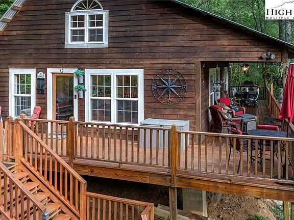 RIVER ROOST IS AN IMMACLATE MOUNTAIN CABIN WITH FABULOUS NEW RIVER FRONTAGE. This cottage sits above the road well out of the flood zone among the wooded homesite with sweeping natural fern surroundings. Beautifully decorated by an interior designer, the home is warm and inviting. The main floor features an open concept with cathedral ceilings and cozy gas fireplace in the living room open to both the dining room and kitchen, great for entertaining friends and family. The primary bedroom with full bath and an additional bonus room is currently used as a sleeping room. A convenient laundry area is located in the main floor bath with a barn style sliding door. Upstairs is a bedroom and full bath in an open loft overlooking the great room below. Well-maintained home features a covered and open deck with amazing views of the New River, giving you the feel of living in a "Tree House". Across the road is an additional lot providing great access to the river with plenty of room for your outdoor enjoyment, i.e., camping, fishing, kayaking or just cooling off in the river on a hot summer day. A storage shed is on the lot as storage for your canoe, kayak and other river gear. Relax around the fire pit and picnic area. This home features engineered roofing and floor trusses built on piers with the floor system fully boxed in with a self-supporting covered deck. Great investment property. Long and short term rentals permitted. SIDE NOTE: For additional serenity, a proposed deck w/hot tub situate on 1st landing from top would be great if placed on rental program. EXPERIENCE TRANQUIL LIVING!