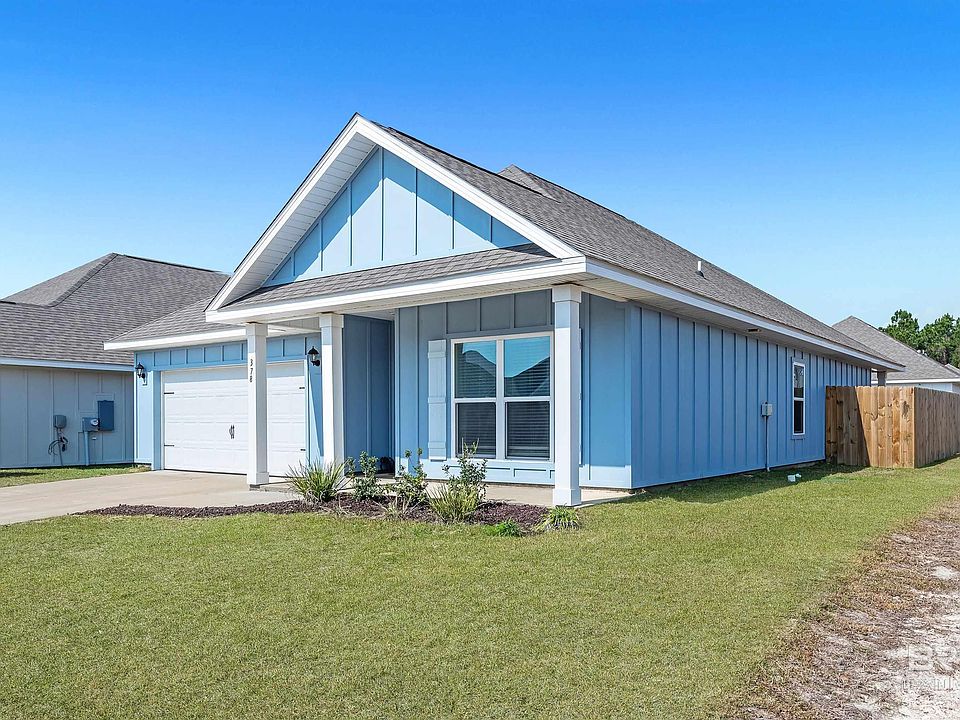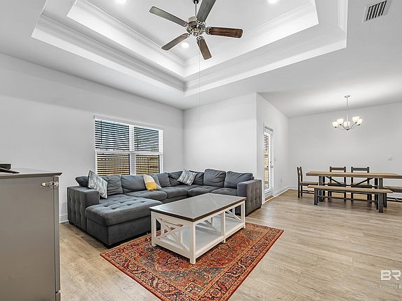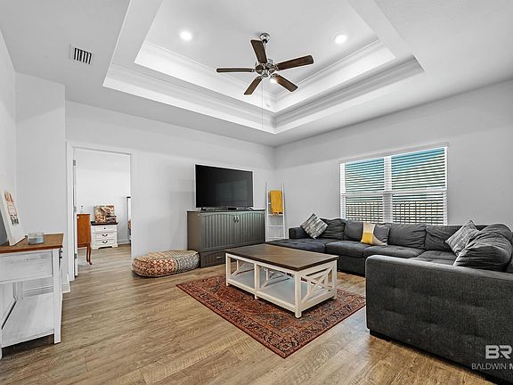 Located in AVENTURA subdivision with luxury amenities in Gulf Shores, 4.4 miles to the sand! Built in 2022. Interior upgrades of this 4/2 include 9’ ceilings, soft close cabinets, trey ceilings in Living Room and Primary Bedroom, GAS range, Rinnai tankless water heater, split floor plan, granite counter tops and luxury vinyl plank flooring throughout. The Primary Bedroom Suite features a large walk-in closet, a large soaking tub, a separate shower, and a water closet. This home is Gold Fortified and the exterior boasts Hardie® board siding, a fenced-in yard and hurricane fabric shield protection. Gemini Street is in Phase 2 and all construction on this street has been completed. Aventura subdivision amenities include a resort style pool with facilities, playground, fire pit, fiber optic, ponds, and sidewalks throughout. Conveniently located to shopping, dining, schools, and beaches. `
