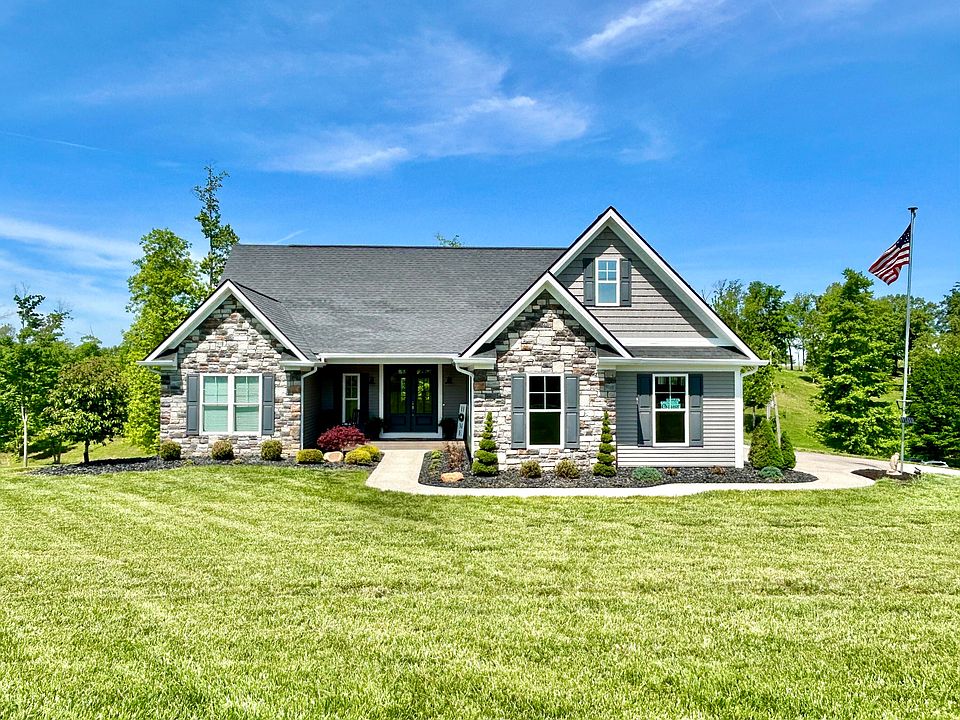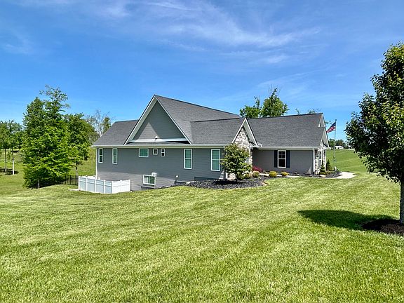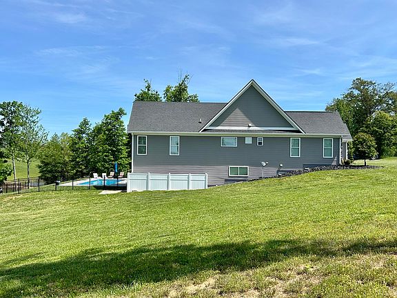 This exquisite custom-built home is nestled on 10 lightly restricted acres that welcomes you to embrace country elegance while being just minutes from beautiful Lake Cumberland. This gorgeous property exemplifies luxury living with its high-end finishes and well-appointed features. Beautiful hardwood flooring is complimented by the sophisticated charm of marble countertops. The home houses 4 possibly 5 generous bedrooms, 4 1/2 bathrooms, a roomy master suite with spacious walk-in closet and marble shower, and a beautiful modern kitchen equipped with top of the line stainless appliances, gas range, 2 ovens, and a cozy hearth room area with stone fireplace. A full finished walk out basement serves as the ultimate entertainment hub, complete with wet bar and workout room. Also featuring a home office overlooking the heated inground pool and hot tub, a Generac whole house generator, dual laundry rooms, security system w/ cameras, safe room, and super nice pantry. A 60 X 40 detached garage/barn offers up its own living quarters and is setup for your motorcoach or large boat. Horses are welcome here, and a beautiful boat ramp is less than 3 miles away, catering to all lifestyles