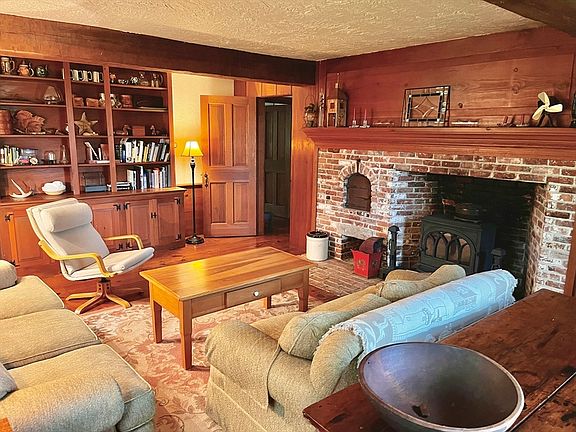 WELL MAINTAINED 4 bedrm, 3.5 bath Oversized Cape w/1st flr main bedrm & full bath + accessory apt over 2 car attchd gar w/own entrance -all privately set on 1.65 Acres. Spacious liv rm, wide pine flrs, wood paneling, Sturbridge Village fp w/beehive oven & separate flue. Fam rm w/cathedral ceiling, 2023 skylights w/power shades, French doors flow out to patio, deck & inviting yard. Upgrades & extras thruout: kitchen w/granite, pocket doors to dining rm, Bullseye glass transom over front door, 2x6 construction, built-ins, outdoor shower, large shed w/power, temp controlled hardwired attic fan, accessory apt has a zone of heat, kitchenette w/ref & stove, bath w/shower & plenty of storage + balcony. Improvements: 2024 two Andersen new windows, 2022 ext painted, 2022 oil tank, 2019 well pressure tank, 2017 new roof, Oil boiler (6 zones) & HTP hybrid super store hot water tank, 2006 one car gar & Andersen replacement wndws thruout most of home. Set up your showing!