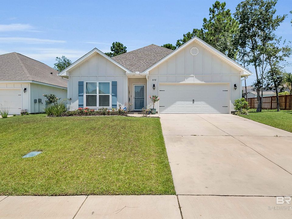 Welcome to this beautiful Coastal Cottage. This lovely home is situated on a spacious lot that backs to a wooded area offering privacy and a peaceful environment to enjoy outdoor activities. This popular Rhett plan features a split 4 bedroom floor plan that offers a private large primary bedroom with en-suite. The very open and spacious kitchen, living and dining area is a great place to gather and to entertain. No wasted space here! These thoughtful owners have added several upgrades to make this home shine! As you enter the home notice the LVP flooring throughout, high ceilings, crown molding, custom light fixtures and ceiling fans. The kitchen boasts granite counter tops and bar. seating. The addition of oversized subway tile laid vertically really dresses up the kitchen and compliments the cabinetry, counter tops and appliances. A Gas stove and upgraded refrigerator are awesome additonal features. These wise owners added a large window in the dining area which allows the space to be flooded with natural light and opens up the view to the outdoors. The Living area and primary bedroom feature trey ceilings for added heigth and spaciousness.Enjoy the convenience of double granite vanities, a seperate shower, garden tub and a private water closet in the primary bath as well as a great size walk in closet. Just at the end of the street is a great park and a short distance away the gorgeous and huge community swimming pool. Aventura is a highly desirable neighborhood in the highly regarded Gulf Shores School district. This location is convenient to shopping, restraunts, sporting and entertainment and our Sugar white sands and emerald coast of the Alabama Beaches. Come see for yourself. Buyer to verify all information during due diligence.