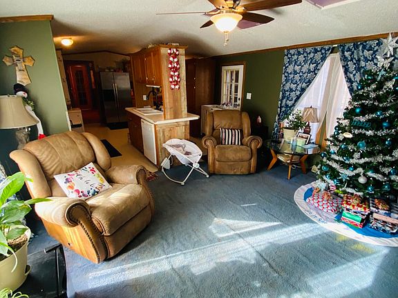 The ''Hidden Pond'' home has had the same family for nearly 20 years. This single wide trailer is still comfortable, warm and safe but will need a small amount of work to make it perfect. Did I mention yet, it has a fireplace? A very spacious single wide home is on a concrete block foundation, with a maint free siding and a roof only about 10 years old. A new insulated well house has been built and the well pump was replaced about two years ago. Seller will offer a $2500 allowance for new carpet, paint and other flooring if desired. Sellers are moving out of state and will not make any upgrades or repairs, but will happy to negotiate allowance if needed. Will be sold as-is. ** NEW IN-GROUND STORM SHELTER**