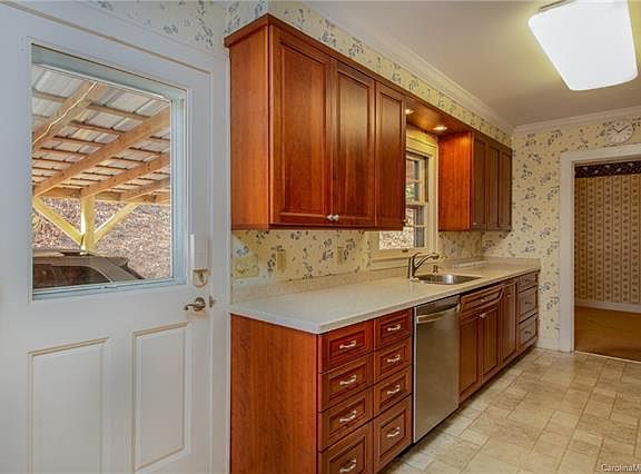 Beautiful ranch home on a corner lot in the coveted English Woods community. The paved circular drive has a 2 car carport allowing you easy access and protection from the weather. Step into your custom kitchen featuring cherry cabinetry and silestone countertops with small breakfast area and adjoining dual office. Large dining room & living room offer flexibility of use plus a gas fireplace for cozy evenings enjoyed at home. 3 spacious bedrooms and 2 full baths round out the main level of the home. Basement is unfinished but has laundry area with sink and commode plus tons of storage and work space. Great home for a family or retiree. Super convenient to Ingles, and less than 5 minutes to down town Spruce Pine.