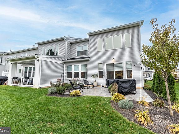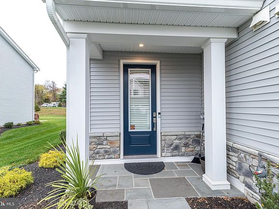 Don't miss this fabulous end unit move-in ready home in the award winning 55+ community, Regency at Waterside. This spectacular 3BR, 2.5BA End Unit Carey Elite Glenshire Model has all the upgrades you will enjoy and love! Enter the sunny end unit with a covered porch into the impressive 2-story foyer that seamlessly flows into the kitchen and great room . The designer kitchen is stunning with upgraded quartz countertops and center island, upgraded tiled backsplash with under counter lighting, upgraded white cabinets with soft close drawers, 5 burner stovetop, large pantry, and stainless steel appliances. Check out the custom chandelier that is hung from the 2-story ceiling! Dining room/ Great room combo gives you a great open floor plan. . Enjoy entertaining in the spacious 2-story great room that was expanded 4 feet out for additional living space, with windows galore. Professional blinds are already installed! This huge room gives you endless possibilities, all windows are adorned with designer shades. The Great Room leads a a fabulous blue stone patio with extensive landscaping and overlooks open space and trees. You will enjoy entertaining and grilling on the patio with family and friends. The front and back yard has been professionally landscaped. You will love the luxurious FIRST FLOOR BEDROOM suite with a walk-in closet and spa-like bath remote control blinds. The bath has a double bowl sink and large upgraded tiled shower. Having a bedroom on the first floor is the best!!!! A laundry , powder room and entrance to 2-car garage with built-in storage cabinets and epoxy floor coating, completes the first floor. The second floor has an extra large loft area, 2 additional bedrooms, hall bath and a finished bonus room for extra storage. Amenities in the community include a 10,000+ sq. ft. state-of-the-art clubhouse with indoor and outdoor pools, yoga studio, bocce court, pickleball, putting green, dog park, outdoor pavilion area, plus community trails for running, biking, and walking This low-maintenance community has lawn care and snow removal. Don't wait, make an appointment today, great price with all the extras and special touches competed.