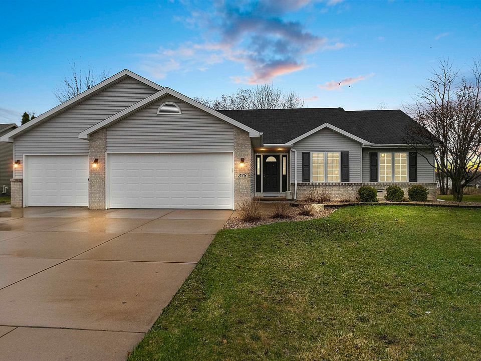 Nicely maintained 4 bedroom 3.5 bath bath ranch home with spacious floorplan located near schools & parks. Living room w/Vaulted ceiling & gorgeous stone fireplace. Spacious kitchen w/updated SS appliances & abundance of cabinets & pantry. Master suite w/walk-in closet & private full bath. 1st floor laundry. Professionally finished lower level for extra flex area with walk up bar area along with 3rd full bath and 4th bedroom. Home has many new updates including furnace & Central air and new roof, gutters & downspouts to be completed by April 15th (Weather permitting) Roof comes with 50 year warranty. 3+ stall finished garage and private backyard.