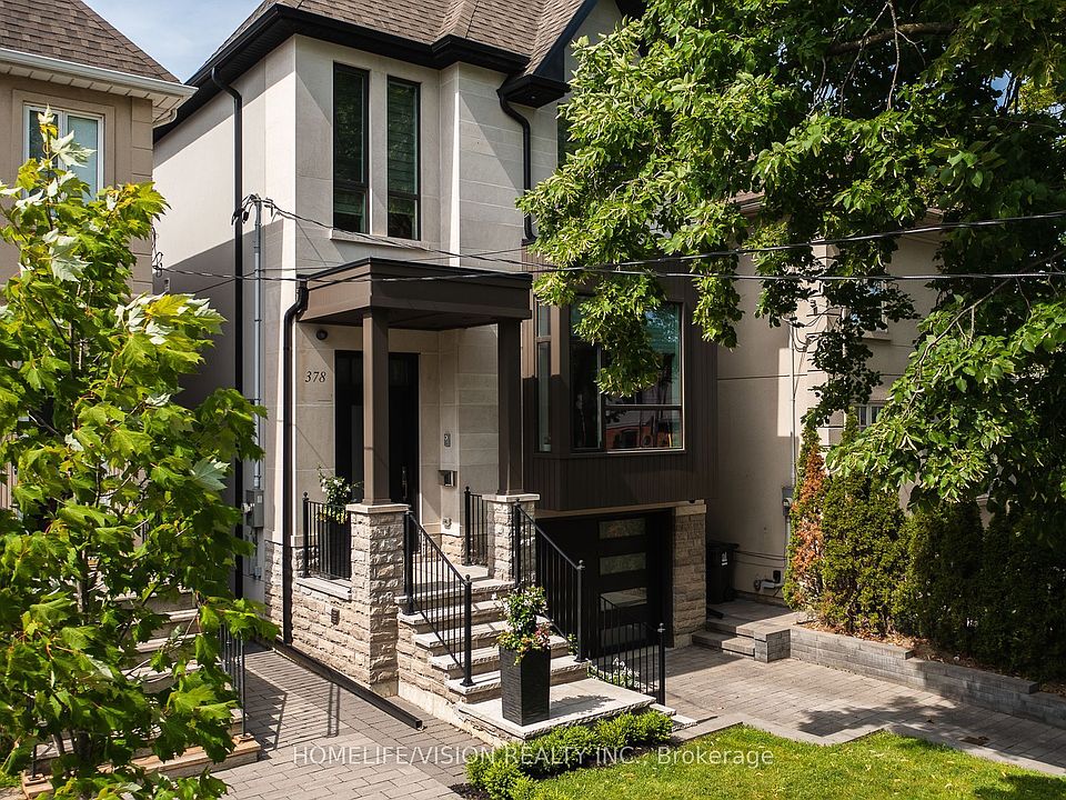 Welcome to 378 Manor Rd, a rare architectural gem nestled in one of Toronto's most coveted communities. Over 3400 sq ft. living space, created by architect owners with a passion for design, this home offers a unique blend of modern elegance and smart functionality. A truly rare opportunity with a private driveway, making the home wider than most newly built properties in the area. Designed for comfort and livability, the basement features heated floors powered by a dedicated boiler, with a ceiling height of 9.5 feet, matching the main level and enhancing the home's spacious, open feel. The second floor offers generous 8.5-foot ceilings, contributing to the light-filled and airy design throughout. Featuring 4+1 bedrooms and 4 bathrooms, the home includes a spa-inspired primary ensuite with a soaking tub, rain shower, and vessel sink. The stunning luxury kitchen is a true showpiece, featuring top-of-the-line Thermador appliances that blend seamlessly into the custom cabinetry. Designed for both beauty and practicality, the space includes six premium Richelieu pull-out pantries, offering smart, discreet storage solutions for the most organized chefs. A separate butler's pantry enhances the functionality, ideal for entertaining with a dedicated space for prep, storage, and cleanup. Oversized windows and two Velux skylights, strategically placed above the staircase from the main to the second floor, bring in abundant natural light. Additional highlights include top of the line Hunter Douglas blinds and tastefully designed millwork throughout, including a beautifully integrated custom wine cellar on the main floor.