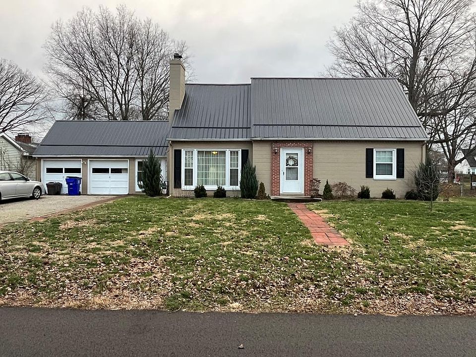 This charming 4-bedroom, 2-bathroom story-and-a-half residence offers a unique and cozy living experience. The main floor features a spacious living room, dining room with garden views, ample cooking and storage space in the kitchen, and two bedrooms. The owner bedroom is conveniently located on the main floor, providing easy access and privacy. First floor laundry is located in the second bedroom closet with a stackable unit that stays. Could easily be moved to the full basement. New metal roof, newer windows, new heat pump. Ascending the staircase, you'll find the second floor with two additional bedrooms with plenty of storage and a bathroom. The upper level's design, with its slanted ceilings and adds character to the bedrooms, creating a warm and inviting atmosphere. The house is complemented by a two-car garage, providing ample parking space and storage along with an additional new storage shed. The exterior boasts a mix of garden, yard, and a built in patio with fireplace.