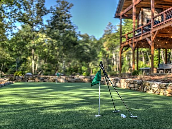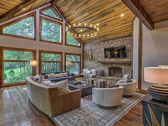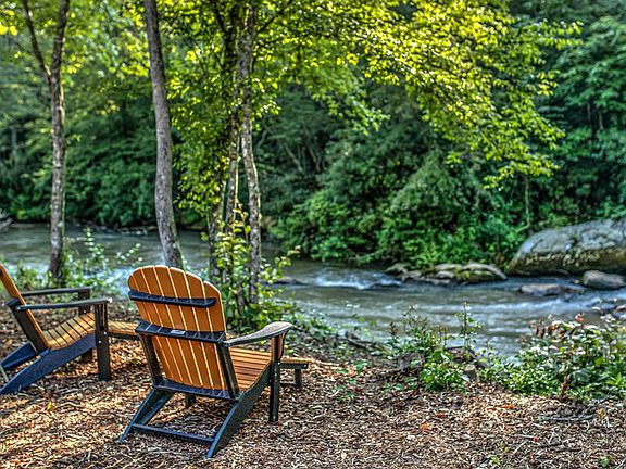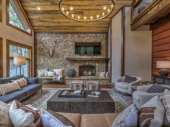 Step into a realm of opulence at this unique 4br/4.5ba creek-front mountain retreat, where industrial elements blend seamlessly with rustic charm. As you get lost in the unrivaled amenities this furnished cabin has to offer, a sense of grandeur envelops you, with every detail meticulously crafted by the builder to create an aura of sophistication. The heart of the home, the kitchen, dining area, and convenient butlers pantry beckons you with promises of entertainment and indulgence at its finest. Marvel at the top-of-the-line Viking appliances adorning the kitchen and wet bar, while a magnificent wall of stone complements the expansive living space, replete with lofty ceilings and vast windows that invite the outdoors in. The primary bedroom and bath exude luxury, featuring amenities like a spa steam wet room, heated floors, and a backdrop of nature's soothing waterfalls lulling you to sleep from its own private balcony. Upstairs beckons with a cozy coffee bar, an office area, and another lavish bedroom and bath, all centered around a striking steel fireplace that commands attention. Step out onto it's own private balcony to behold the picturesque grounds and the loud rushing creek below. The terrace level serves as your sanctuary, boasting a splendid wet bar, a charming stone fireplace, and two additional en-suites. Outside, a level fenced-in yard offers a safe haven for children and pets, featuring a delightful putting green for all to enjoy. The nearby creek provides easy access for fishing in Fannin County's designated trout stream, adding to the allure of this magnificent property. With four fireplaces and an additional fire pit, evenings are destined to be spent cozied up in warmth and comfort. This residence presents a superior choice for the short-term rental market, allowing you to own a distinctive property that stands unmatched in its allure and elegance.