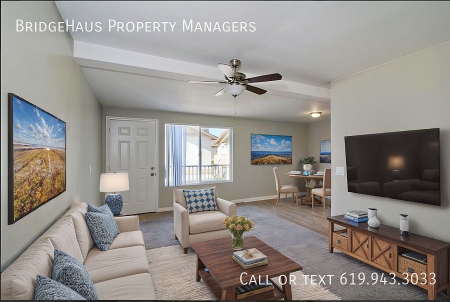 This Chula Vista Townhome won't last long! This property features 1,100 square feet of living space and a patio on the second floor with access from one of the bedrooms. Upon entering the unit, you walk into the well-lit living, dining and kitchen area with newly installed hardwood floors and new paint. The kitchen has all of the essential appliances and plenty of cabinet space. In unit washer and dryer is also in the unit. One bedroom is located on the first floor next to a full bathroom. Walk upstairs to the living quarters and you'll find two bedrooms, one of which has a patio for some outdoor lounging! Both of the bathrooms are also upstairs and recently renovated with a clean design and style. The townhouse has a detached two car garage under the unit for an additional charge. The unit has no AC but does have central heat. Brief Summary Of Rental Criteria: - Household must make at least 2.5 times the rent in income, or sufficient housing allowance. - Applicants must have a minimum credit score of 650. - Each person over the age of 18 must complete an application and pay a $42 screening fee. - You must be willing to sign a 12-month lease. - We score each household based on their income, credit score and rental history. What You Might Have A Question About: - Monthly Rent: $2,795 - Security Deposit: $2,795 - 2-Car Garage: Additional $150/month - Pets: Max 2 Dogs or 2 Cats with a $500 Pet Deposit - Utilities You Are Required To Pay: Gas/Electric, Water Patio Area Townhouse Trash
