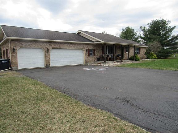 BEAUTIFUL 3 bedroom, 2 bath brick ranch home with 26 x 30' attached garage, just minutes from town. The interior of the home was recently painted throughout, has new moldings and mostly newer flooring throughout. The main floor of this home offers a large kitchen/dining room with many Oak cabinets, appliances and breakfast bar with plenty of natural day light through the large dining room windows overlooking the peaceful back yard. There is also a nice, bright living room, a master bedroom with attached bath, 2 additional bedrooms (all with new carpet) and another full bath. Down in the basement you'll find a nice family room and game room/playroom, a large workshop space with cabinets that will stay and large utility room. Outside you'll love the nice covered front porch, flower and vegetable gardens and nice landscaping all around. If you have been looking for that "move in ready" home, don't delay!
